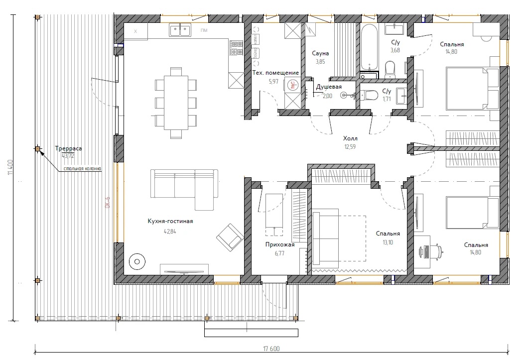 Общее кол-во спален: 3